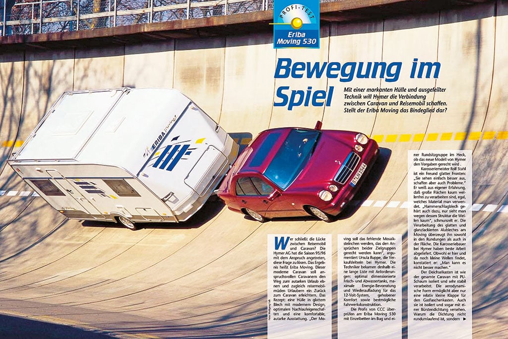 Der damalige Verleger, Gerhard Dolde, investierte – in mehr Seiten, mehr Themen. Nach wie vor unerreicht: der Profitest, der seit Ausgabe 11/94 eine Säule in jedem Heft darstellt. Redakteur Volker Stallmann nimmt seit Jahren jeden Wohnwagen akribisch unter die Lupe, unterstützt durch fachkundige Experten aus Karosseriebau, Elektrik, Wohnkultur. Der TÜV sitzt ebenfalls im Boot. Zu lesen in jeder Ausgabe. Der Wohntest wurde aus der Redaktion herausgelöst und von freien Mitarbeitern als Feldversuch gestaltet. So zeigt sich im Einsatz, wie sich ein Caravan bewährt. Aus der Marktübersicht Zugwagen wurde der Fahrbericht zu einem speziellen Pkw – wie auch heute noch.