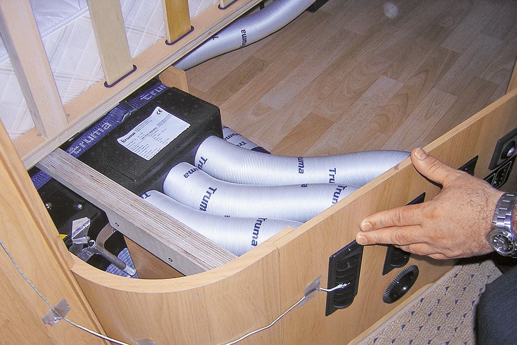 Mit der Frostair steigt Truma 2005 auch ins Kühlgeschäft ein und verlegt die Klimaanlage vom Dach ins Innere des Caravans. Der Effekt ist sensationell, aber der Montageaufwand groß. Daher setzt sich die Box gegenüber den Dachanlagen nicht wirklich durch.