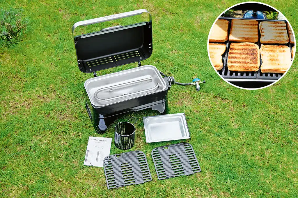 Der Carri Chef 50 von Cadac und der Party Grill 600 von Campingaz sind die größten Modelle im Testfeld und liegen quasi auf Augenhöhe. Auf- und Abbau gehen schnell von der Hand, beide bieten die größte Grillfläche und Hitze im Test, die jedoch Aufmerksamkeit verlangt, wenn man nicht auf großflächige „Röstaromen“ steht. Ein Vorteil dieser großen Modelle: Die Kombination aus Größe und Leistung kommt dem richtigen Grill-Feeling sehr nahe. Der Cadac ist allerdings rund 100 Euro teurer und somit auch mit Abstand das teuerste Modell im Feld, bietet dafür aber eine Menge an Zubehör für ambitionierte Vielgriller, die leidenschaftlich gerne experimentieren.