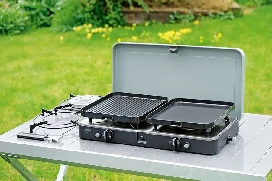 Elektrogrills wiederum haben den Nachteil, dass sie Strom brauchen. Unabhängig der Stromthematik in diesen Tagen und möglichen künftigen Preisanpassungen ist ein Einsatz nicht immer möglich, zum Beispiel wenn Campingplätze nur 6 Ampere anbieten – vom Grillerlebnis ganz zu schweigen. Gasgrills zählen nicht als „offenes Feuer“ und sind fast überall erlaubt, zudem haben sie den Vorteil, dass sie während des Aufheizens geruchsneutral sind und nicht zu unterschätzen bereits nach wenigen Minuten auf Temperatur. Ein Tipp vornweg: Mit einer Grillplatte kann die Rauchentwicklung noch einmal minimiert werden, da Fett nicht in der Glut oder auf den Brennern verdampfen kann.