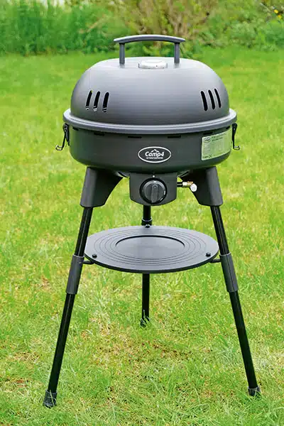 Fazit: Der Cadac Carri Chef 50 ist ein leistungsstarker All-in-One-Gasgrill, der mit umfangreichem Zubehör und einer Grillfläche von ø 46 cm für echten Grillgenuss auch beim Camping sorgt. Wenn der Deckel (mit Temperaturanzeige) geschlossen ist, entsteht ein Ofen, ideal zum Backen, Rösten oder Schmoren. Der Carri Chef 50 (auch als kleineres Modell 40 erhältlich) kommt dem echten BBQ-Feeling am nächsten, dafür ist er mit Abstand das teuerste Modell mit großem Platzbedarf, wenn sämtliches Zubehör mit auf Tour geht.