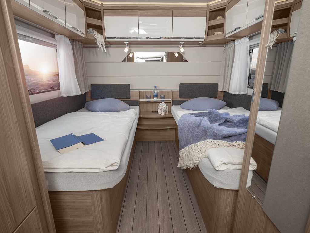 Geräumig, umfassende Wintertauglichkeit und gut ausgestattet, soll die Scandinavian Selection des Südwind skandinavische Herzen höherschlagen lassen und nun auch britische. Gelingen soll dies dank des neuen Möbeldekors. In Hochglanzweiß und warmem Holzton Matara Teak wirkt das Interieur modern nordisch und zugleich gemütlich, hell und freundlich. Detaillierte Verbesserungen im Möbelbau, die 600 Millimeter breite Tür mit Fenster und die optimierte Polsterung des Sitzbereichs sollen die Modelle noch geräumiger und komfortabler machen.