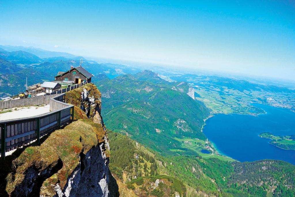 Auf den Schafberg (1783m) geht es in 35 Minuten mit der steilsten Zahnradbahn Österreichs. Im Abteil der Bahn bittet eine junge Chinesin einen anderen Fahrgast, sie zu fotografieren. Gestern noch in Wien, morgen schon in Prag und heute eben auf dem Schafberg: Alles muss dokumentiert werden. Oben angekommen, bietet sich ein überwältigendes Panorama auf die Seenlandschaft des Salzkammerguts. 14 Seen sind an klaren Tagen aus zu sehen – unter anderem der Attersee, Irrsee, Fuschel- und Mondsee und natürlich der Wolfgangsee.