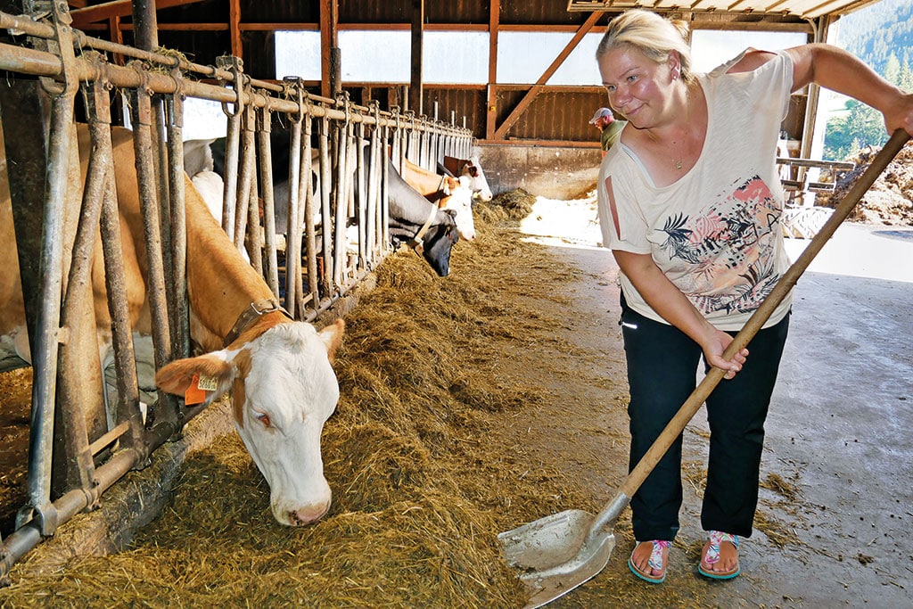 Eines ist jedem Gast klar: Die Lage und der Ausblick sind einmalig. Hier will niemand mehr weg. Wer Sport, die Ruhe und die pure Natur mag, kommt hier voll auf seine Kosten. Wer Luxus liebt, ist hier falsch. Die Kinder tollen auf dem Platz herum. Es gibt viele verschiedene Tiere auf dem Hof, wie z. B. 40 Milchkühe und 70 Kälbchen, Schafe, glückliche Hühner, Hasen sowie ein Pony, die den Kindern Spaß und Abwechslung bringen. Streicheln und füttern ist hier erlaubt. Alternativ bietet Andreas Ehemann Hannes eine Runde mit dem Traktor an. Am Rand liegt ein kleiner Spielplatz, ausgestattet mit Rutsche, Schaukel, Trampolin und Mini-Schwimmbecken. Langweilig wird’s hier nie.