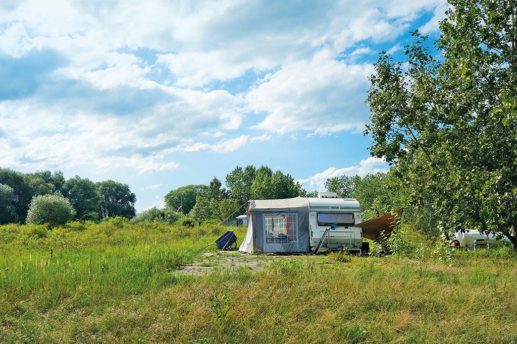 Wer die maritime Seite des Alten Landes schätzt, ist auf dem Camping Krautsand in Drochtersen gut aufgehoben. Er liegt nur 100 Meter von der Elbe entfernt. Man kann sogar auf einer Elbinsel campen. Auf Lühesand liegt ein einfach ausgestatteter Platz mit ganz viel Natur drum herum – ein Platz für Leute, die mal ein paar Tage die Zivilisation hinter sich lassen wollen. Meist sind es Dauercamper, die hier ihre Zelte aufschlagen. Fährmann Holger Blohm schippert die Wohnwagen zwischen dem Festland und der Insel hin und her.