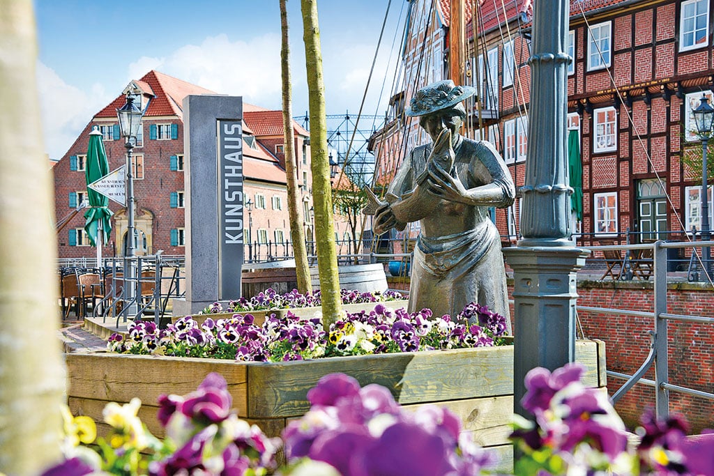 Buxtehude ist die Zweite im Bunde, die sich mit dem Titel Hansestadt schmücken darf. Zugleich ist Buxtehude Märchen- stadt, bekannt geworden durch „Der Hase und der Igel“. Die Geschichte, in der der pfiffige Igel dank einer List den hochnäsigen Hasen beim Wettrennen besiegt, soll sich auf der kleinen Heide bei Buxtehude abgespielt haben. Die Skulptur von Hase und Igel steht in der Fußgängerzone, mit dem Zusatz: „Lerne vom Hasen, warum rasen?“. Das alte Hafenbecken an zentraler Stelle in der Altstadt gleicht einer holländischen Gracht.