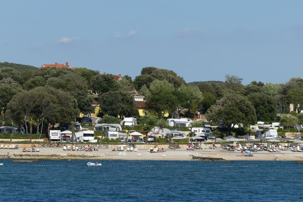 Der Campingplatz Val Saline liegt in der Bucht nördlich von Rovinj. Er verfügt über 730 Meter Kiesstrand mit Badesteg und drei Badeplattformen. Man genießt allen Komfort eines Fünf-Sterne-Platzes, er ist mit ca. 300 Parzellen aber recht überschaubar und schafft eine familiäre Atmosphäre. Die gekiesten Parzellen sind stufenförmig Richtung Küste angelegt und verfügen größtenteils über natürlichen Schatten. Ganz oben auf dem Berg gibt es weniger komfortable Plätze, die aber abseits vom Trubel auch sehr reizvoll sind. Fünf zum Teil sehr moderne Sanitäranlagen sind über den ganzen Platz verteilt, es stehen auch behindertengerechte und Anlagen für Kinder zur Verfügung.