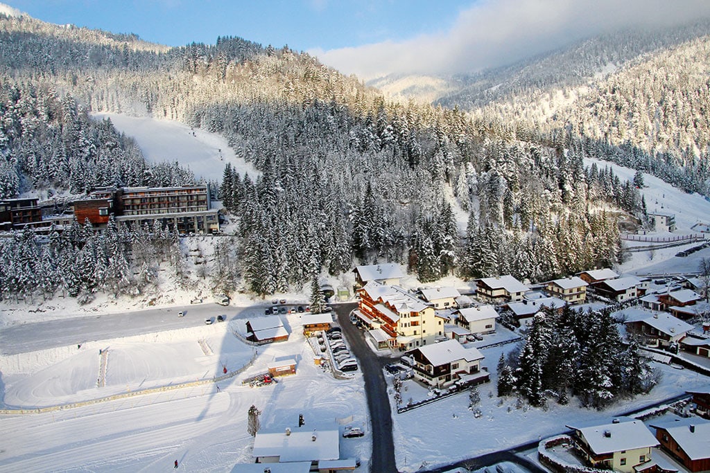 All das, was wir am Vortag auf eigenen Füßen erkundet haben, sieht nun von oben wie ein Spielzeugland aus. Der Haldensee am Horizont, das mächtige Neunerköpfle fast zum Angreifen nah und natürlich das winterlich verschneite, scheinbar schlafende Tannheimer Tal. Einer Perle gleich schimmert der Vilsalpsee im Sonnenlicht. Wohl eine der reizvollsten Ziele im Tal, und wie sich am Vortag gezeigt hat, eine Genusswanderung für Alt und Jung.