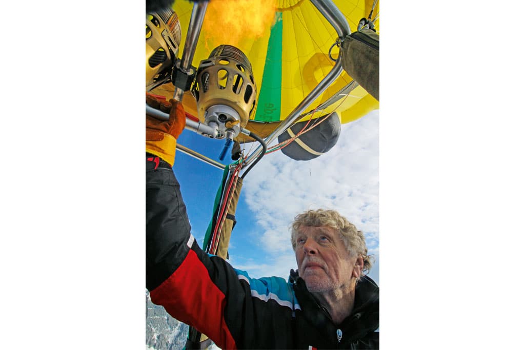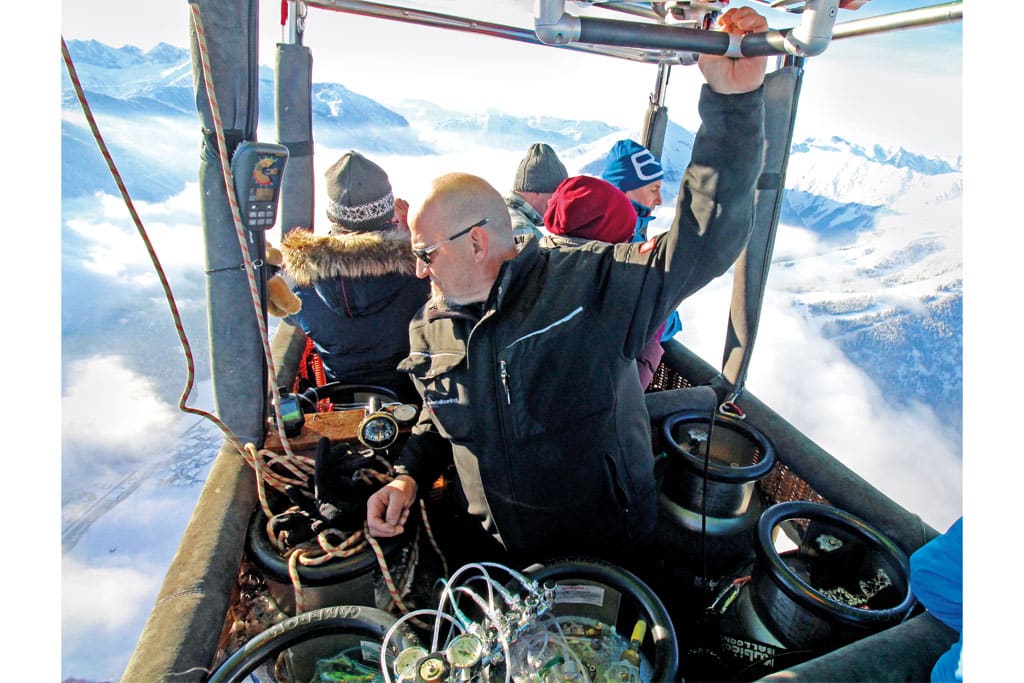Wieder ist es ein eisiger Morgen, wieder schimmern die ersten Sonnenstrahlen über den Bergen und wieder wollen wir helfen, ein „Ungetüm“ aus viel Stoff in Form zu bringen. Dieses Mal ist es eine etwas größer Variante, ein Heißluftballon für acht Gäste und einem Rauminhalt von an die 7.000 Kubikmeter. Das Gebläse sorgt für erste Bewegung in der Ballonhülle und schon bald brüllen die Gasbrenner durch den winterlichen Morgen. Die anderen Ballone am Startplatz sind etwas schneller, doch Eile mit Weile. Schon bald ist auch der Ballon von Pilot Andy Nairz startklar und beginnt seine Fahrt.