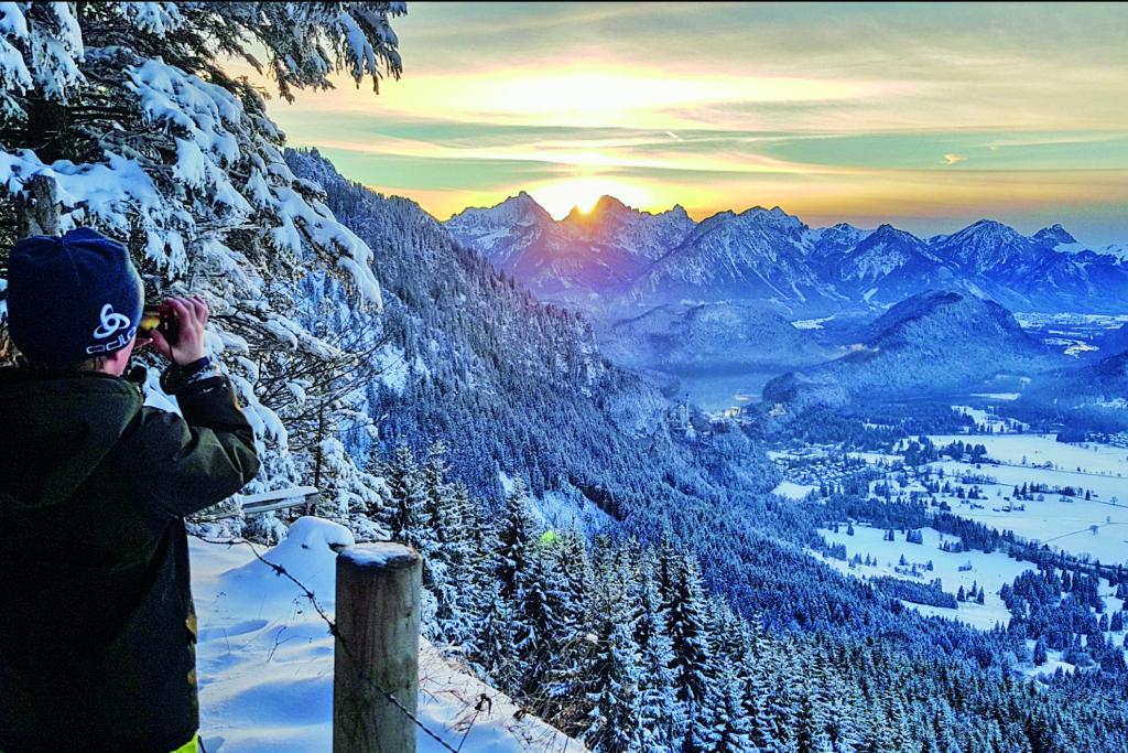 Roland Schörkuber ist Berufsjäger in Schwangau, etwas nordöstlich von Füssen. Er kümmert sich um den Wildbestand in den Ammergauer Alpen und um die tägliche Fütterung der rund 180 Wildtiere. Von Ende Dezember bis zum Frühlingsanfang werden die hungrigen Hirsche aus dem Ammergebirge um 15 Uhr am Bannwaldsee gefüttert. Dazu schaufeln Roland und sein Kollege kiloweise Futter in die Futterstellen. „Durch die Besiedelung im Flachland finden die Hirsche hier nicht mehr so viel Nahrung und würden im Gebirge bleiben und alles fressen, was sie dort finden. Damit würden sie ihren eigenen Lebensraum, den Wald, zerstören“, erklärt der Jäger.