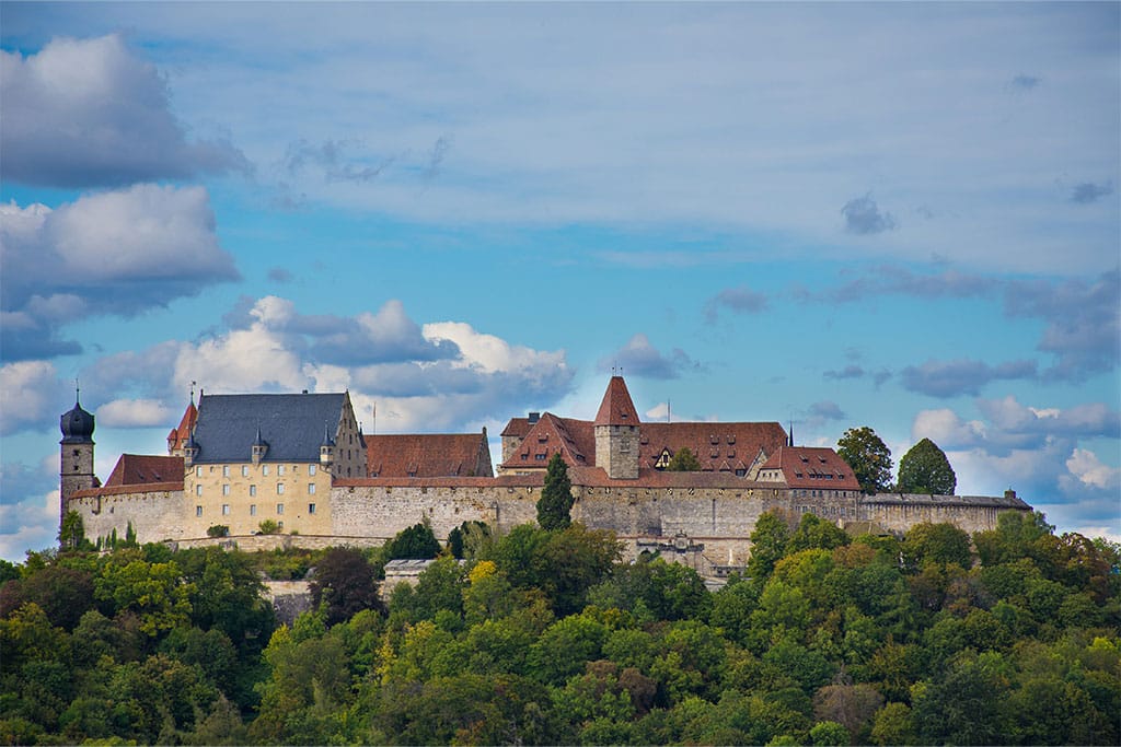 Zu sehen gibt es außerdem international bedeutende Sammlungen, darunter ein Kupferstichkabinett, venezianische Gläser, historische Waffen, die ältesten Kutschen der Welt, Prunkwagen und Turnierschlitten. Hinzu kommen Werke von Cranach, Dürer und Grünewald. Bei einem Besuch der Fränkischen Krone darf natürlich eines nicht fehlen: der krönende Abschluss. Noch einmal die fantastische Aussicht auf Oberfranken genießen und innehalten. Und wer weiß: Vielleicht inspiriert diese Kulisse noch heute den einen oder anderen Gast zu künstlerischen Meisterwerken – womöglich à la Cranach und Dürer.