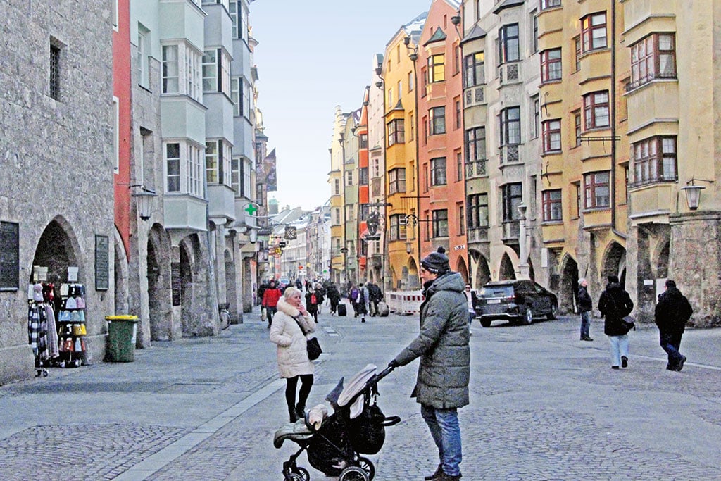Junge Leute mit den Skiern auf dem Rücken prägen ebenso das Straßenbild wie in Stein gehauene Zeugnisse vergangener Zeiten. Die k. u. k. Monarchie und viele Jahrhunderte zuvor lassen grüßen. Innsbruck ist halt gleichzeitig eine junge und auch eine alte Stadt. Ersteres unterstreichen nicht nur die 35.000 Studierenden, die sich in der hiesigen Hochschullandschaft sichtlich wohl fühlen.