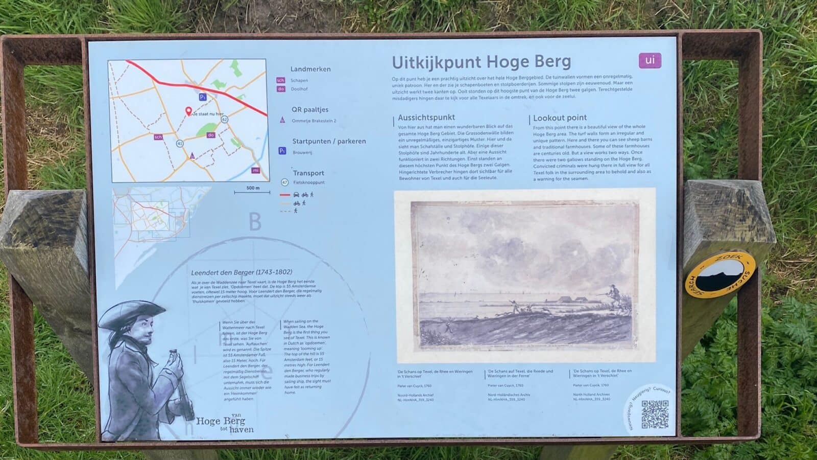 Ein Höhepunkt im wahrsten Sinne des Wortes auf unserer Inselrundfahrt ist die mit 15 Metern über Null höchste Erhebung der Insel. Für Gäste aus der Alpenregion ist das Eiszeitrelikt „Hoge Berg“ kaum sichtbar, doch für die Insulaner ist der Hügel aus Steingeröll – nicht aus Sand – etwas ganz Besonderes: Texel ist nämlich die einzige Watteninsel mit einem steinernen Berg.