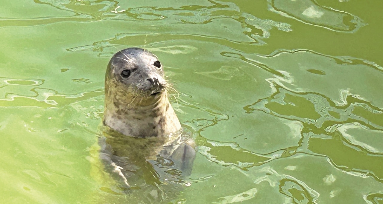 Flora wird von freiwilligen Helfern beliefert, die am Strand manchmal auch Tiere finden. Wie den kleinen Seehund, der seine Mutter verloren hat und mich in der Aufzuchtstation im Naturkundemuseum und Aquarium Ecomare mit seinen großen schwarzen Augen interessiert anschaut. Tierpfleger Yerko Hankmann erklärt, wie verlassene oder verletzte Meeressäuger hier aufgepäppelt werden, bis sie wieder ausgesetzt werden können.