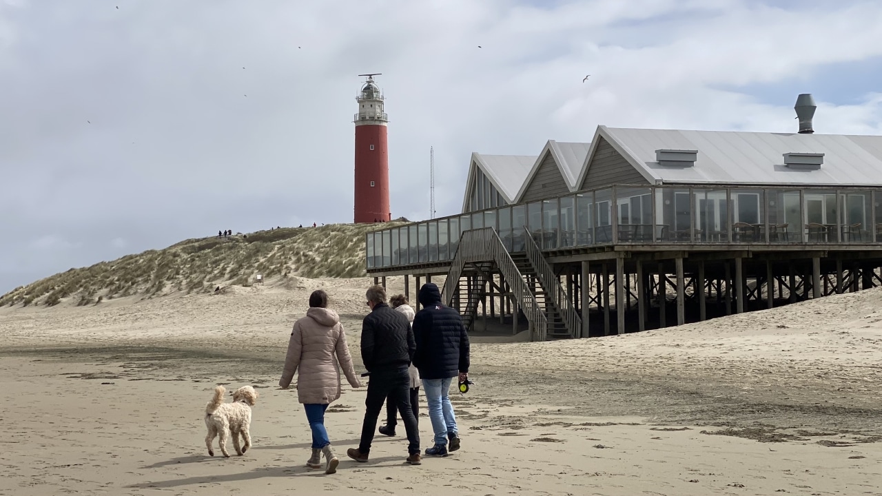 In 45 Metern Höhe überblickt man den breiten Sandstrand, der den Dünengürtel von der offenen Nordsee trennt. Man kann gut 50 Kilometer in Richtung Norden bis nach Vlieland sehen. Die westfriesische Nachbarinsel wirkt dabei so nahe, als ob man hinüberschwimmen könnte. Besser nicht. Die Strömung wäre zu stark und man käme den großen Containerschiffen in die Quere, die ihre gut gefüllten Bäuche vorbeischieben.