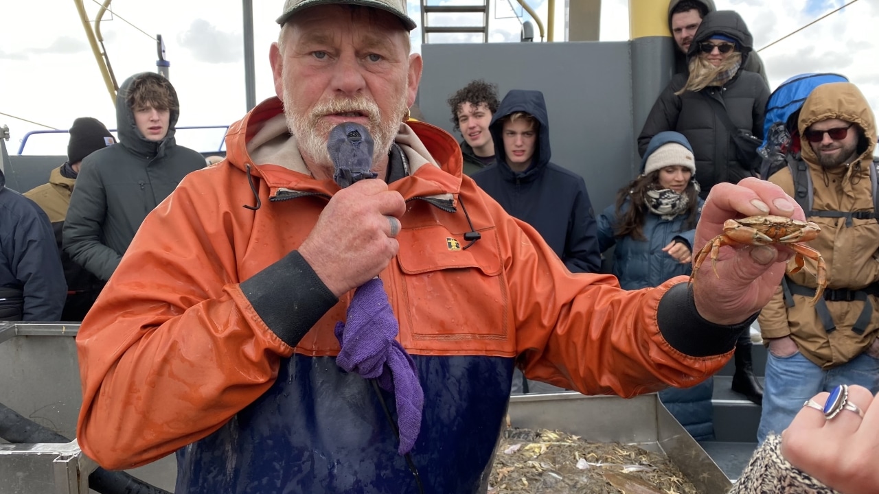 In einem großen Bottich kocht indes schon Wasser für das große Krabbenessen, das der Demonstration der aufgefischten Meerestiere folgt. Aus den vollen Netzen fällt der Fang zunächst in eine Sortieranlage. Fische werden von den Krebstieren getrennt. Ein brummig dreinschauender Seemann (das gehört wohl zum Image) zieht immer wieder besonders schöne Exemplare aus der Auffangwanne und hält sie den Gästen ganz dicht unter die Nase oder direkt vors Display eines auf ihn gerichteten Handys.