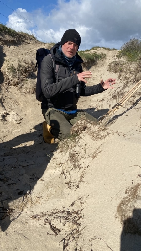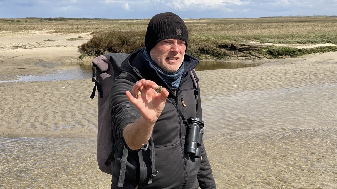 Während unserer Wattwanderung erzählt er von seltenen Orchideen, vitaminreichem Sanddorn, und bückt sich immer wieder, um uns kleinste Details zu zeigen, diesmal nach einer Herzmuschel, die im Sand liegt. Während wir darauf warten, dass sie sich vor unseren Augen wieder eingräbt, erzählt Marcel, dass Mitte des 19. Jahrhunderts ein Damm errichtet wurde, um das Gebiet vom Meer abzutrennen.