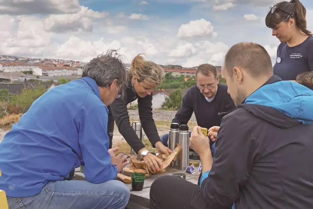 Unterwegs entdecken aufmerksame Beobachter einen Teich mit einem Miniatur-Schloss in der Mitte. Schöne Geschichte: Ein Entenliebhaber ließ es extra für die Tiere anfertigen. Der Weg verläuft teils aussichtsreich über die Schären, wo der Blick bis nach Smögen reicht, sowie durch dichten Wald. Tipp: Thermoskanne Kaffee und leckere Zimtschnecken nicht vergessen und unterwegs eine Fika, die typische schwedische Kaffeepause, einlegen.