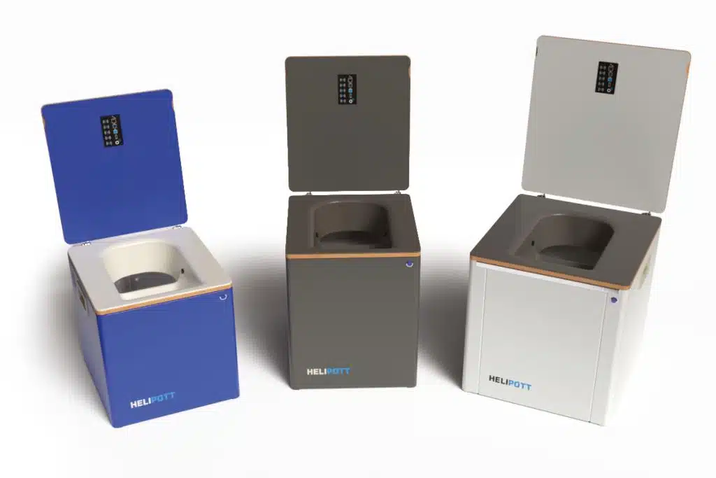 Helipott bietet mit E-Drive und Easy zwei Trockentrenntoiletten mit automatischem (E-Drive) und manuellem Rührwerk (Easy) an. Das Modell E-Drive gibt es in drei Größen (S, M und L) jeweils mit 12- oder 24-Volt-Stromversorgung. In dieser Variante ist die Toilette ein Vollautomat mit automatischer Steuerung. Eine integrierte Intervallfunktion startet das Rührwerk in festgelegten Intervallen immer wieder automatisch. Eine Besonderheit ist die optionale Sprüheinrichtung Magic in der Trennschale – nach dem Schließen des Deckels wird die Schale automatisch ausgesprüht.