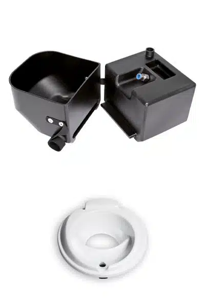 Die Entsorgung erfolgt über den Außenschacht. Ein patentierter Ablaufring erlaubt eine flexible 360°-Drehung, wodurch Perfect Van auf Schläuche in der Urinableitung verzichten kann und die Reinigung einfach und hygienisch macht. Ein Überlaufsensor lässt sich mittels passender Halterung per Schraube an einem der eingelassenen Gewinde am Tank befestigen, ein Entlüftungsventil im DIN 71-Deckel sorgt für komfortables und schwappfreies Leeren des Urintanks.