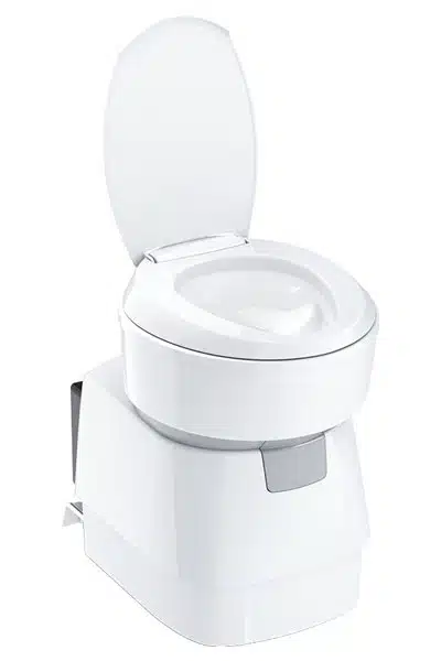 Neben Trockentrenn- und Einschweißtoiletten gibt es außerdem noch einige weitere Toilettensysteme, die wir – da sie doch recht selten sind – als „Exoten“ bezeichnen. Das sind zum einen Zerhackertoiletten, die Fäkalien und Toilettenpapier mithilfe von Messern oder Klingen zu einem Brei verarbeiten und diesen in einen großen Fäkalientank leiten. Zu finden sind sie aufgrund ihres hohen Gewichts, des benötigten großen Fäkalientanks und des hohen Wasserverbrauchs nur vereinzelt in Luxuscaravans wie Airstream.