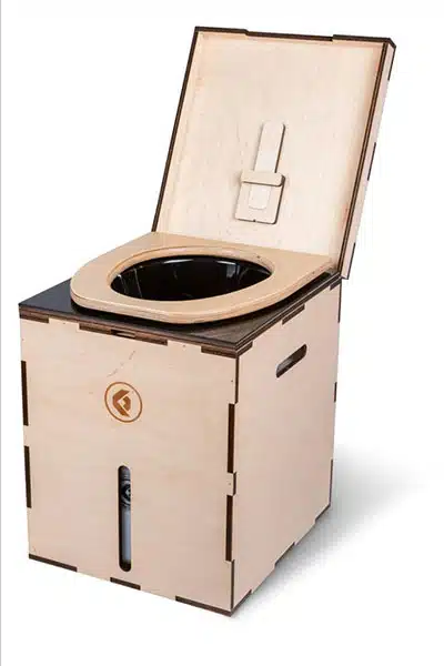Trobolo hat mit der SilvaBlœm eine moderne und optisch ansprechende Trocken-Trenntoilette aus Holz im Sortiment. Der Käufer hat die Wahl zwischen einem natürlichen Finish in Holzoptik und einer HPF-Veredelung, z. B. in Weiß oder Grau. Der robuste Holzkorpus macht die Toilette auch für große und schwere Camper interessant.