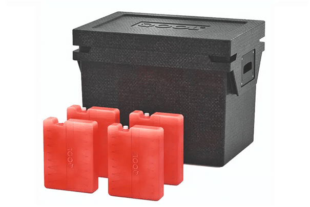 Moderne Passiv-Kühlboxen sind erstens sehr gut isoliert und funktionieren zweitens mit Hilfe von speziellen Kühl-Elementen. Deren Kühlmittel – das sogenannte Phasenwechselmaterial (PCM) – kann, anders als Wasser, einen Taupunkt von unter Null Grad Celsius haben. Dann übernimmt das Kühlelement stets die Kühlarbeit und bewahrt das Eis vor dem Schmelzen. So bleibt die Box deutlich länger kühl.