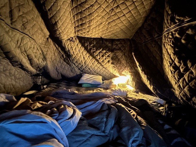 Ist das Thermozelt fixiert, stellt sich das Wohlgefühl einer gemütlichen Höhle ein. Passend für kalte Außentemperaturen!