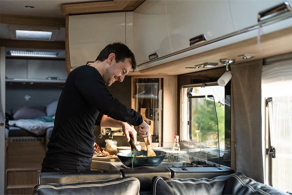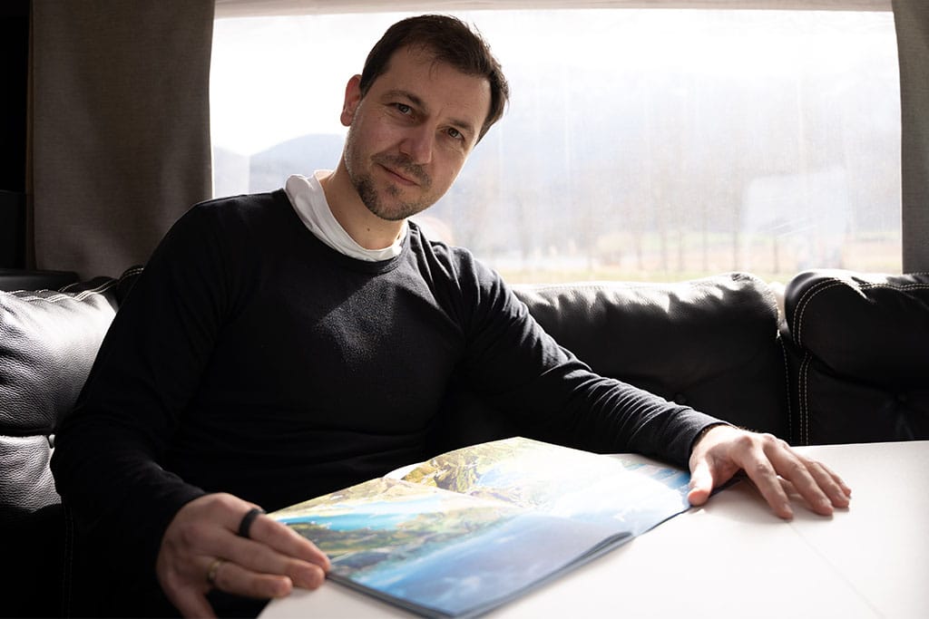 Warum setzt ausgerechnet dieser Ausnahmeathlet auf sein Reisemobil? Ganz einfach – er möchte hautnah am Geschehen sein. Wer sonst wohnt schon während eines Turniers direkt vor der Halle und kann in nur zwei Minuten zum nächsten Match hinüberlaufen? Außerdem hat er so sein eigenes Reich immer dabei – inklusive gemütlichem Wohnzimmer, in dem er Kollegen und Freunde auf einen Kaffee einladen kann.