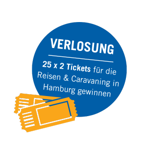 Camping, Cars & Caravans verlost gemeinsam mit den Schwesterredaktionen CamperVans und Reisemobil International insgesamt 50 Tickets für die Reisen & Caravaning in Hamburg. Machen Sie jetzt bei unserer Ticket-Verlosung mit. Füllen Sie hierzu das untenstehende Formular aus. Wir drücken die Daumen und wünschen allen viel Glück!
