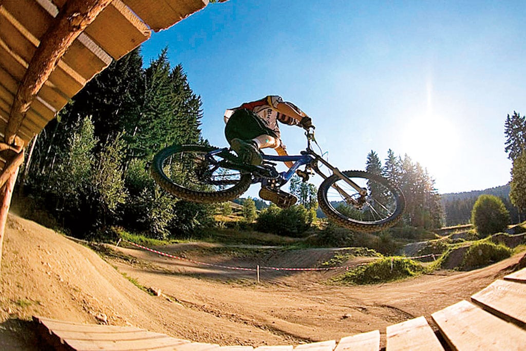 Der Bikepark Geisskopf im Bayerischen Wald gehört zu den abwechslungsreichsten Rad-Dorados Europas. Während die rund einen Kilometer lange „Evil Eye 2.0“-Strecke wirklich nur für Könner ihres Fachs ist, gibt es doch auch einige blau gekennzeichnete Trails wie „Flow Country“ oder „X-Ride“. Sie sind weniger anspruchsvoll. Für Kinder steht ein eigener, 300 Meter langer Parcours zur Verfügung: mit leichten Kurven, Anlieger, Wellen und einer Brücke.