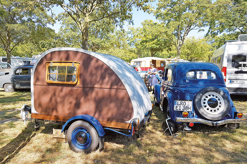 Auch im Green Park in Düsseldorf entsteht 2023 unter dem Namen Nostalgic Journeys wieder die bunte Ansammlung von seltenen Exponaten aller Baujahre in einer gepflegten Camping-Ausstellung mit Zugfahrzeugen und Wohnwagen oder alten Wohnmobilen.