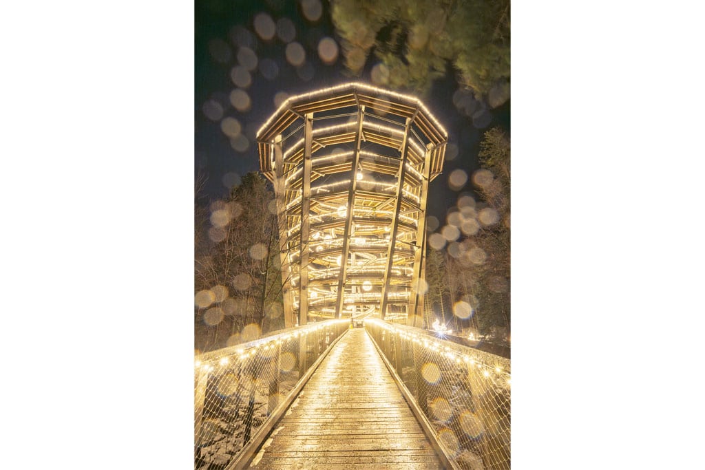Ein ganz besonderes Winter-Highlight erwartet Urlaubsgäste auf dem 1.250 Meter langen Baumwipfelpfad Schwarzwald in Bad Wildbad. Hunderttausende sanfte Lichter werden den Pfad bis in 40 Meter Höhe erleuchten und kleine und große Gäste in eine magische Atmosphäre hüllen.