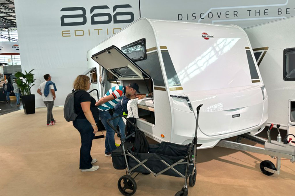 Bürstner startete 2026 mit neuem Logo und Claim „Discover the better“ sowie attraktiven Sondermodellen. Im Fokus steht das Sondermodell B66: Acht Grundrisse, darunter seltene Varianten mit Hubbett, ab 24.990 Euro. Zielgruppe sind preisbewusste Komfortcamper. Der B66 bietet hochwertige Ausstattung wie Kompressorkühlschrank, Warmwasserboiler, Truma-Heizung, Alufelgen und Klimaanlagen-Vorbereitung. Individualisierung ist nicht möglich, aber das Preis-Leistungs-Verhältnis überzeugt.