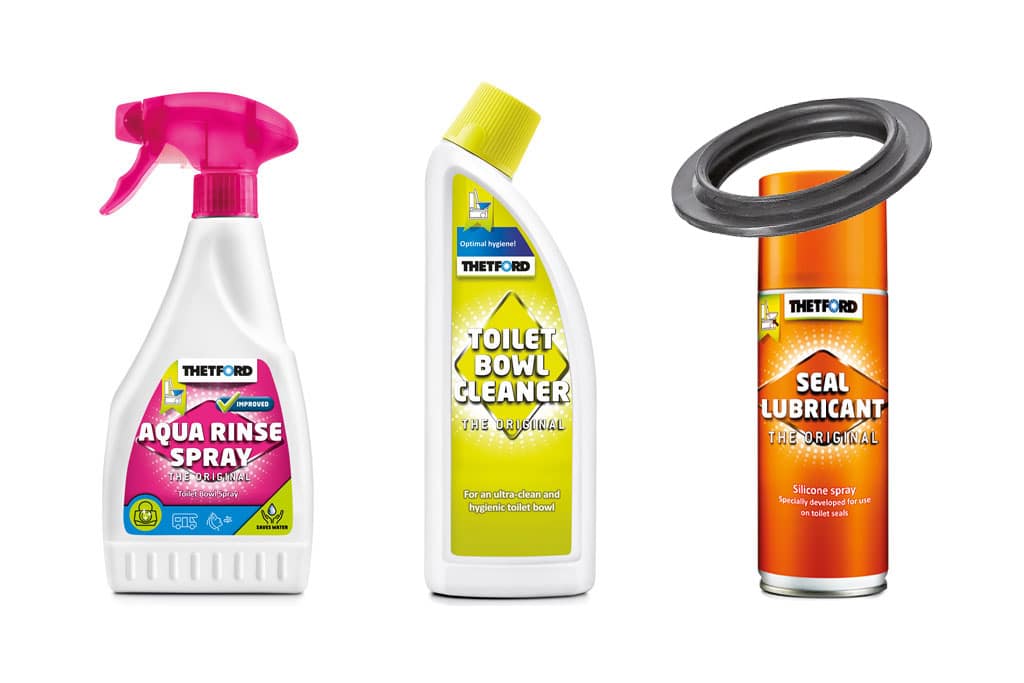 Für die Reinigung des Toilettenkorpus außen wie innen sollte der Camper auf einen speziellen Reiniger für Kunststoff- Oberflächen zurückgreifen. Hier bietet sich Thetfords Bathroom-Cleaner an. Vorteil: Der Sprühschaum ist nicht nur für die Toilette, sondern auch für alle anderen im Bad und in der Nasszelle vorhandenen Applikationen und Möbel aus Kunststoff geeignet.