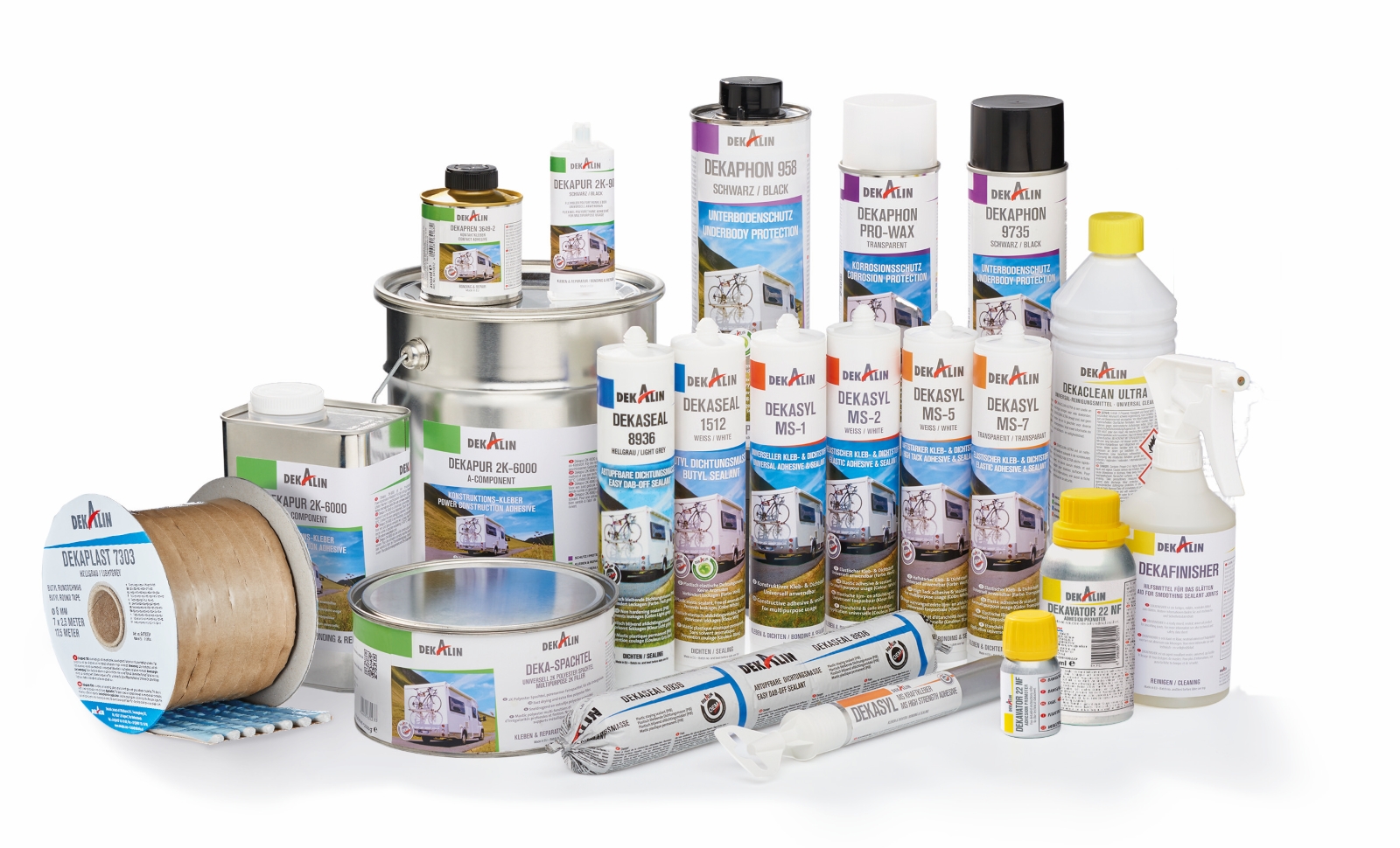 Mit den hochwertigen Klebstoffen und Dichtmasse von DEKALIN sind sie für jede Anwendung bestens gerüstet. In dem breit gefächerten Portfolio gibt es Qualitätsprodukte für jeden Einsatzzweck im Bereich Caravaning  – von Kleben und Dichten über Reinigen und Schützen bis hin zum Reparieren. Ganz neu ab Frühjahr 2026 im Sortiment: das DEKALIN-Klebe-Set für flexibles Solarpanels. Das innovative Bundle enthält alle Komponenten.