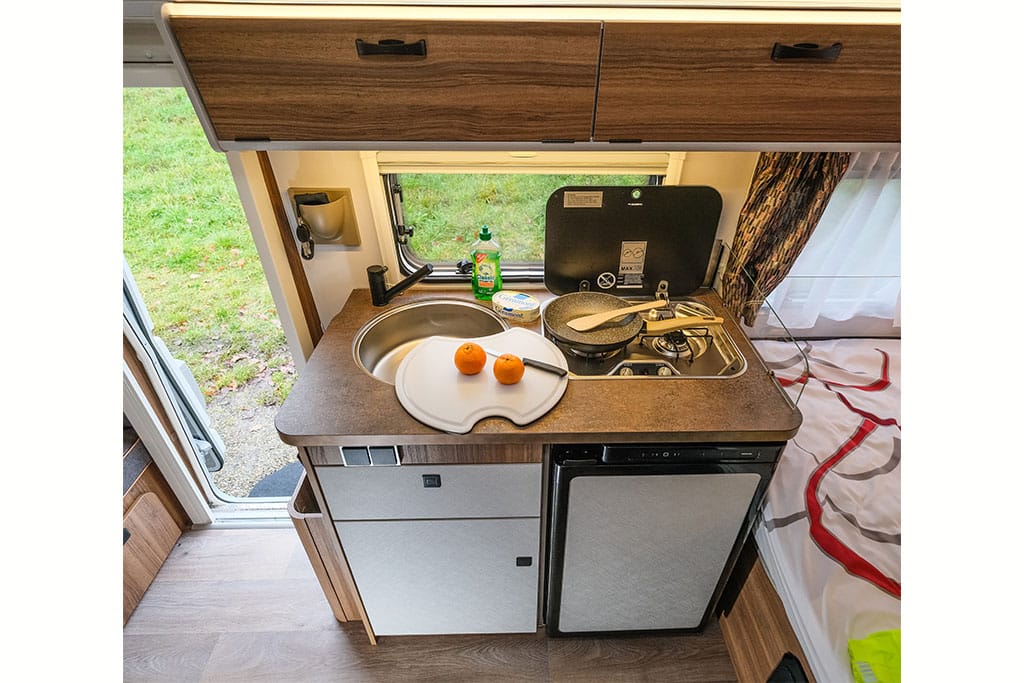 Die aktuelle Version ist, so finden Fans und Kenner, ein Stück zurück zu alten Qualitäten der Baureihe. Und der getestete Touring 530 in der Version Legend gehört ganz sicher zu den Klassikern unter den Klassikern. Dinette vorn, Bad und Küche auf der Achse und ein französisches Bett im Heck, das alles im 4,70 Meter mal 2,10 Meter großen oder vielmehr kleinen Aufbau. Da ist Touring Programm.